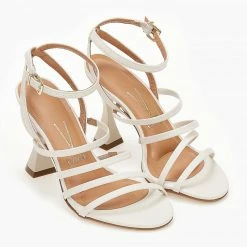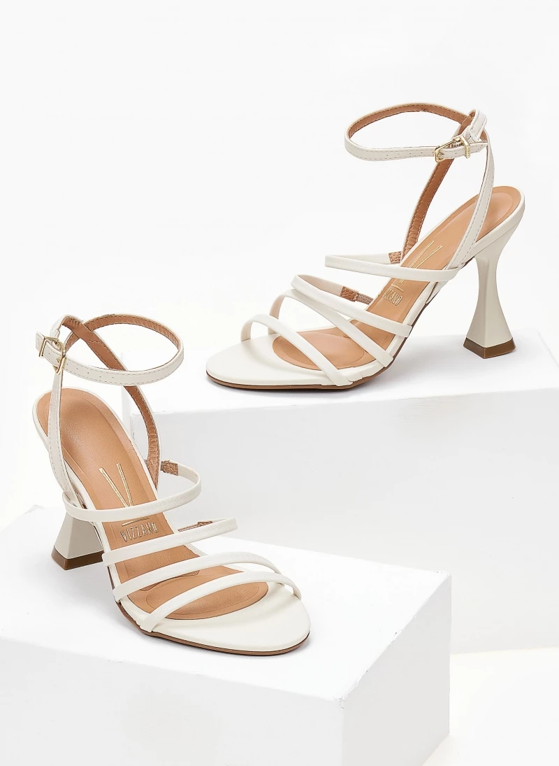 Πέδιλα VIZZANO με ιδιαίτερο σχήμα στο τακούνι. Έχουν λεπτά λουράκια. Δένουν με μπαρέτα στο ύψος του αστραγάλου.