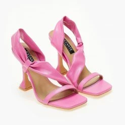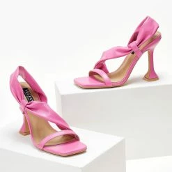 Πέδιλα με ψηλό λεπτό τακούνι. Έχουν μαλακή λοξή φάσα στο κουτεπιέ. Καρέ γραμμή.
