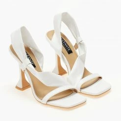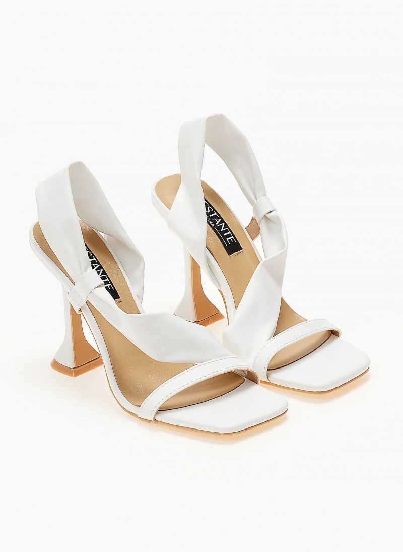 Πέδιλα με ψηλό λεπτό τακούνι. Έχουν μαλακή λοξή φάσα στο κουτεπιέ. Καρέ γραμμή.