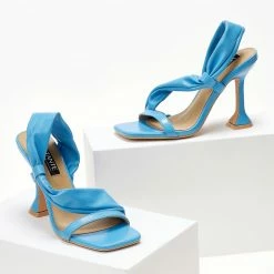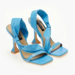 Πέδιλα με ψηλό λεπτό τακούνι. Έχουν μαλακή λοξή φάσα στο κουτεπιέ. Καρέ γραμμή.