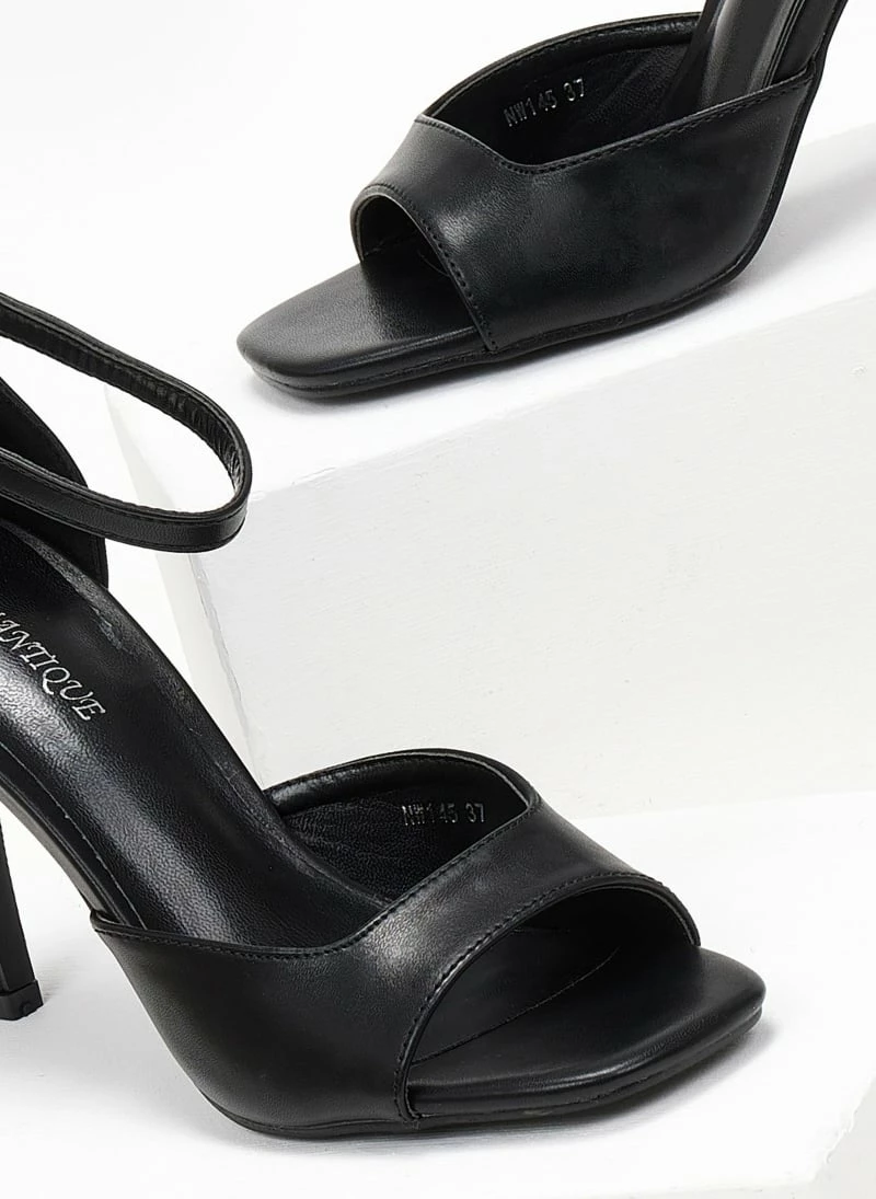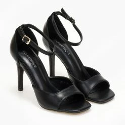 Πέδιλα με κλειστή φτέρνα. Δένουν με μπαρέτα στο ύψος του αστραγάλου. Καρέ γραμμή.