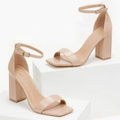 The Fashion Project Πέδιλα με ψηλό τετράγωνο τακούνι – Nude