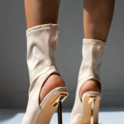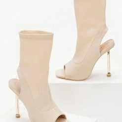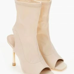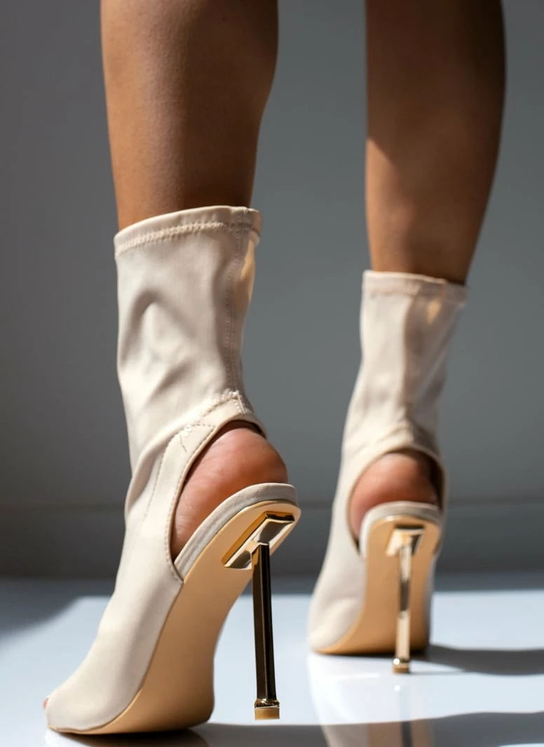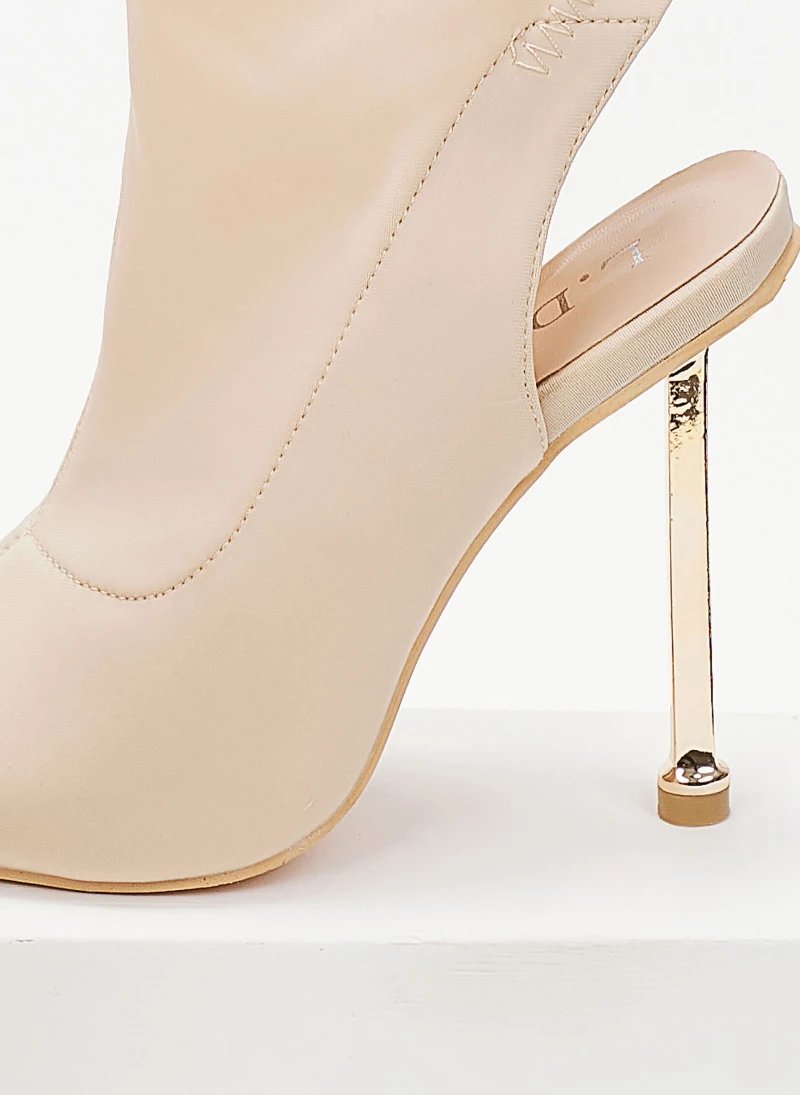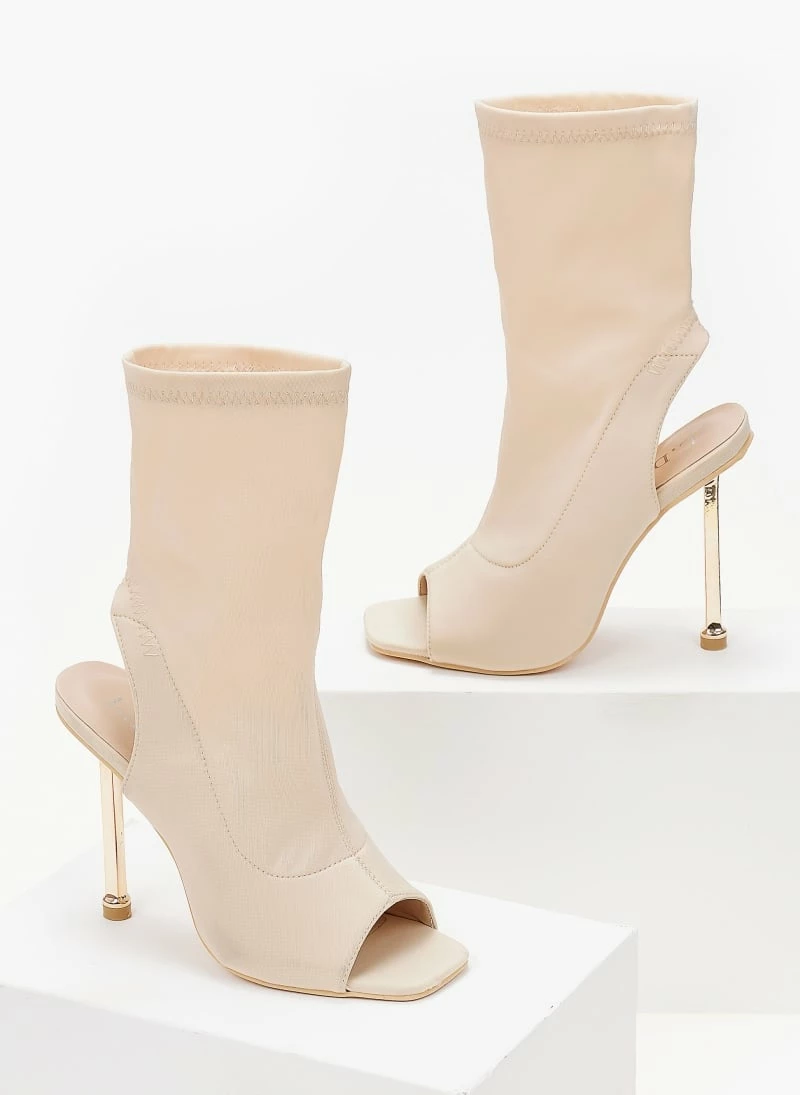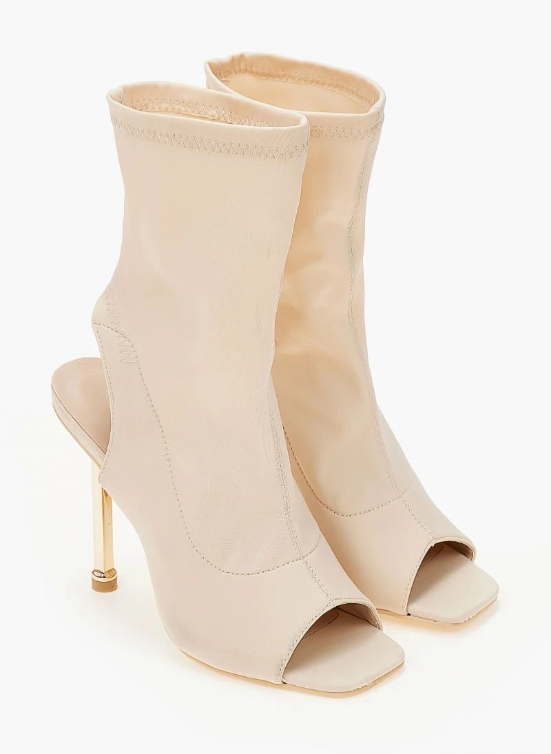 The Fashion Project Πέδιλα μποτάκια με μεταλλικό τακούνι – Μπεζ