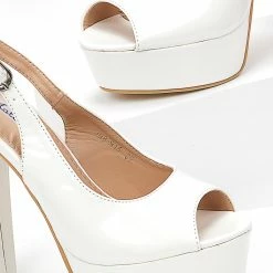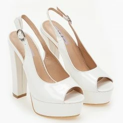 The Fashion Project Πέδιλα Peep Toe λουστρίνι με φιάπα – Λευκό