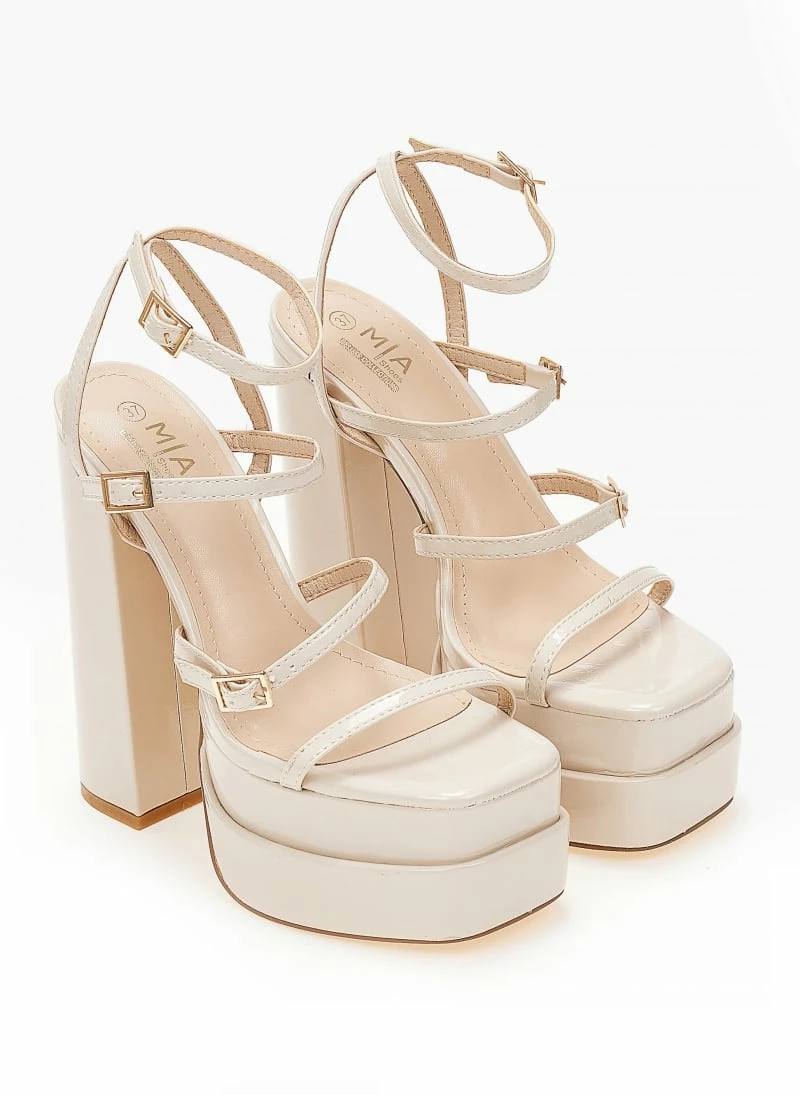 The Fashion Project Πέδιλα Platform λουστρίνι με λεπτά λουράκια – Μπεζ