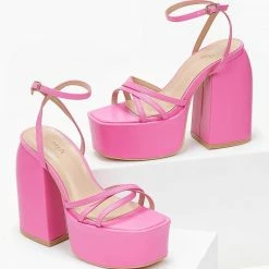 The Fashion Project Πέδιλα Platform με μπαρέτα – Φούξια