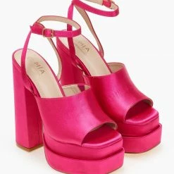 The Fashion Project Πέδιλα Platform σατέν με φαρδιά φάσα – Φούξια