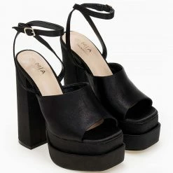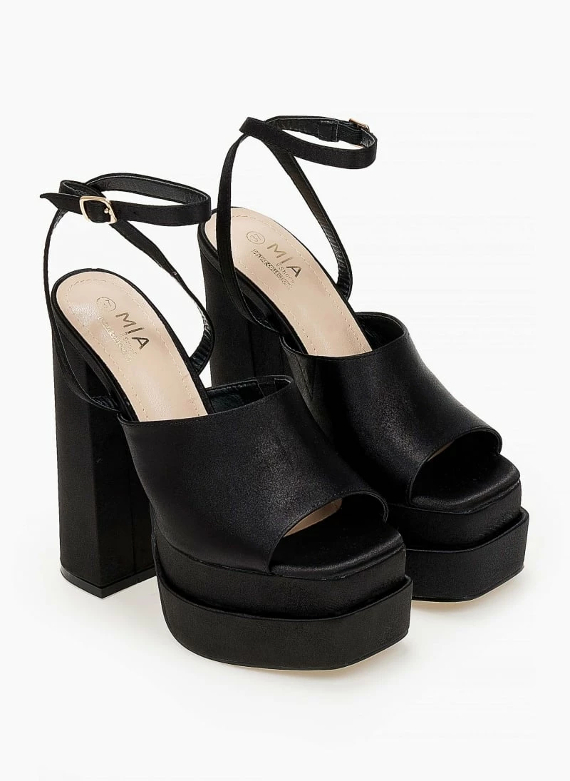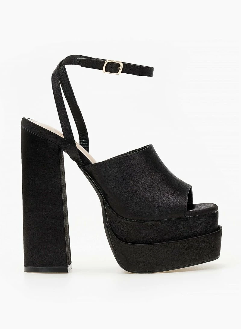 The Fashion Project Πέδιλα Platform σατέν με φαρδιά φάσα – Μαύρο