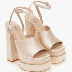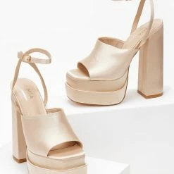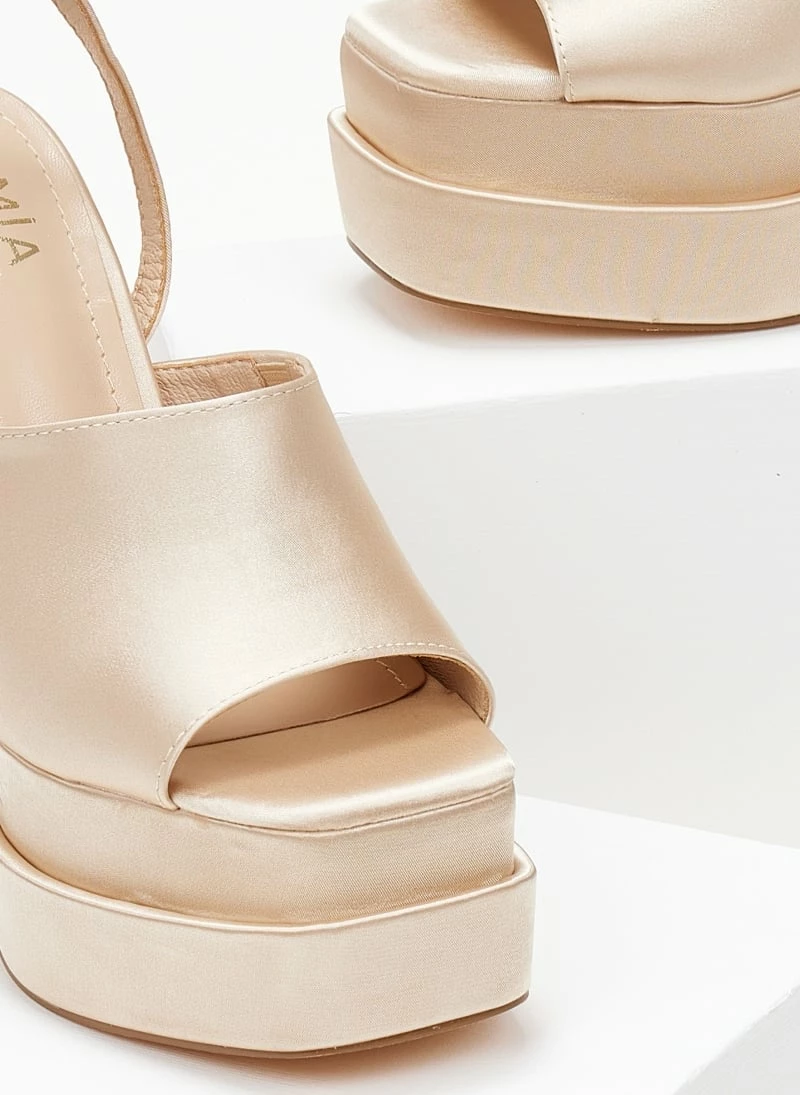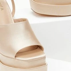 The Fashion Project Πέδιλα Platform σατέν με φαρδιά φάσα – Μπεζ