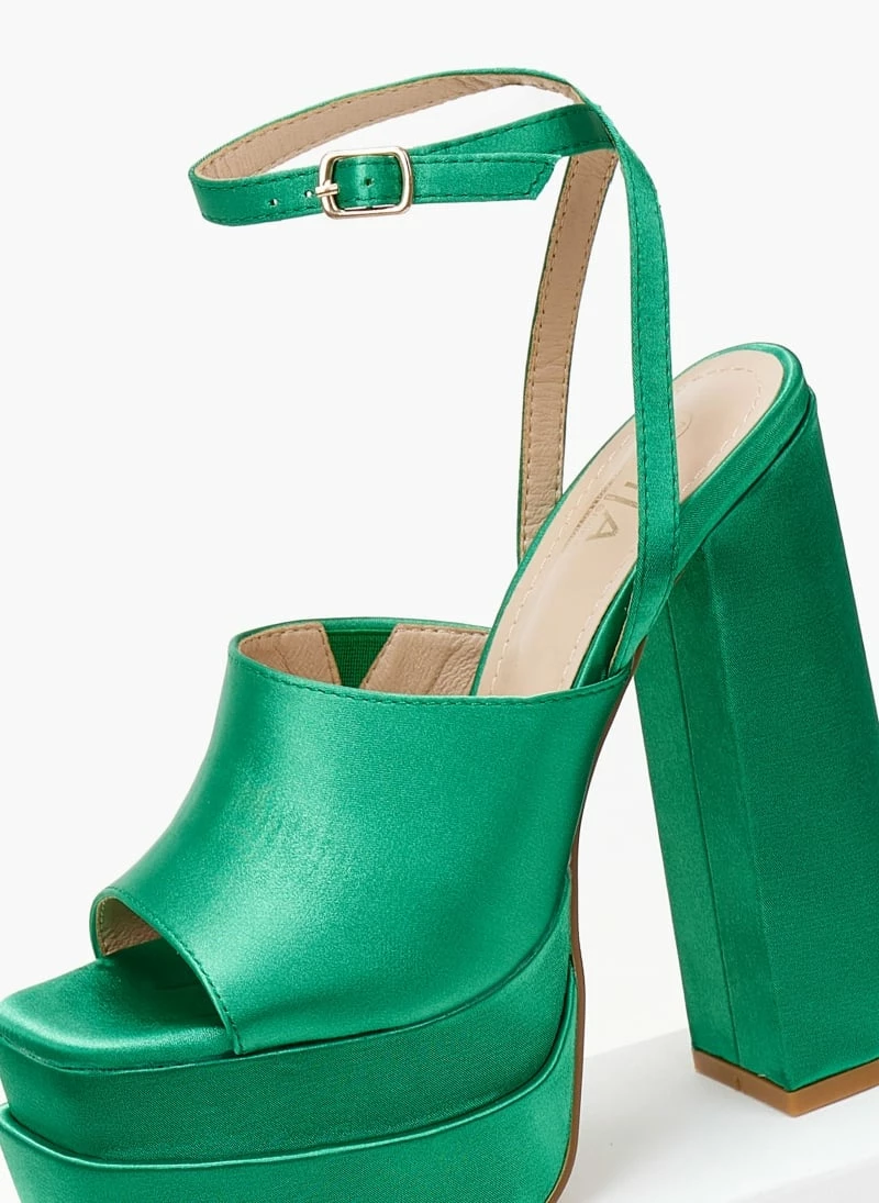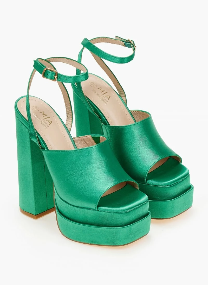 The Fashion Project Πέδιλα Platform σατέν με φαρδιά φάσα – Πράσινο