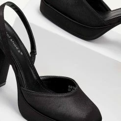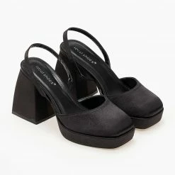 The Fashion Project Πέδιλα σατέν με χοντρό τακούνι – Μαύρο