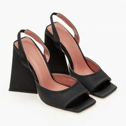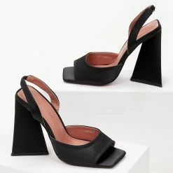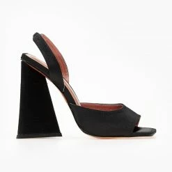 The Fashion Project Πέδιλα σατέν με τρίγωνο τακούνι – Μαύρο
