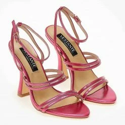 Πέδιλα σε μεταλλικά χρώματα με λεπτά λουράκια. Δένουν με μπαρέτα στο ύψος του ατσραγάλου.