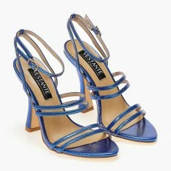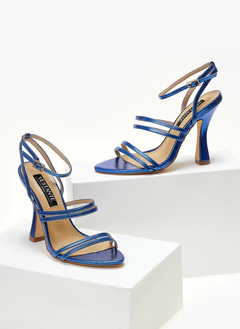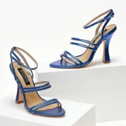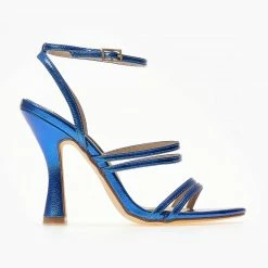 Πέδιλα σε μεταλλικά χρώματα με λεπτά λουράκια. Δένουν με μπαρέτα στο ύψος του ατσραγάλου.