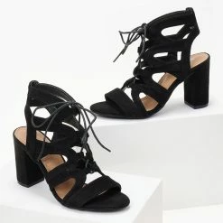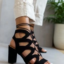The Fashion Project Πέδιλα Suede με κορδόνια – Μαύρο