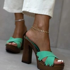 The Fashion Project Τσόκαρα Nubuck με χιαστί φάσες – Μέντα